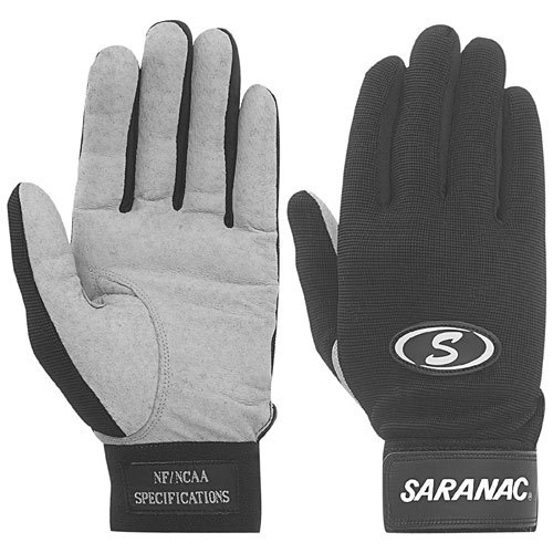 The Saranac™ tackified adult football receiver gloves feature a special tackified leather palm for a strong grip. The spandex back provides flexibility and comfort and the VELCRO® brand closure keeps the fit secure and easily adjustable. See size specifications below. Read more...